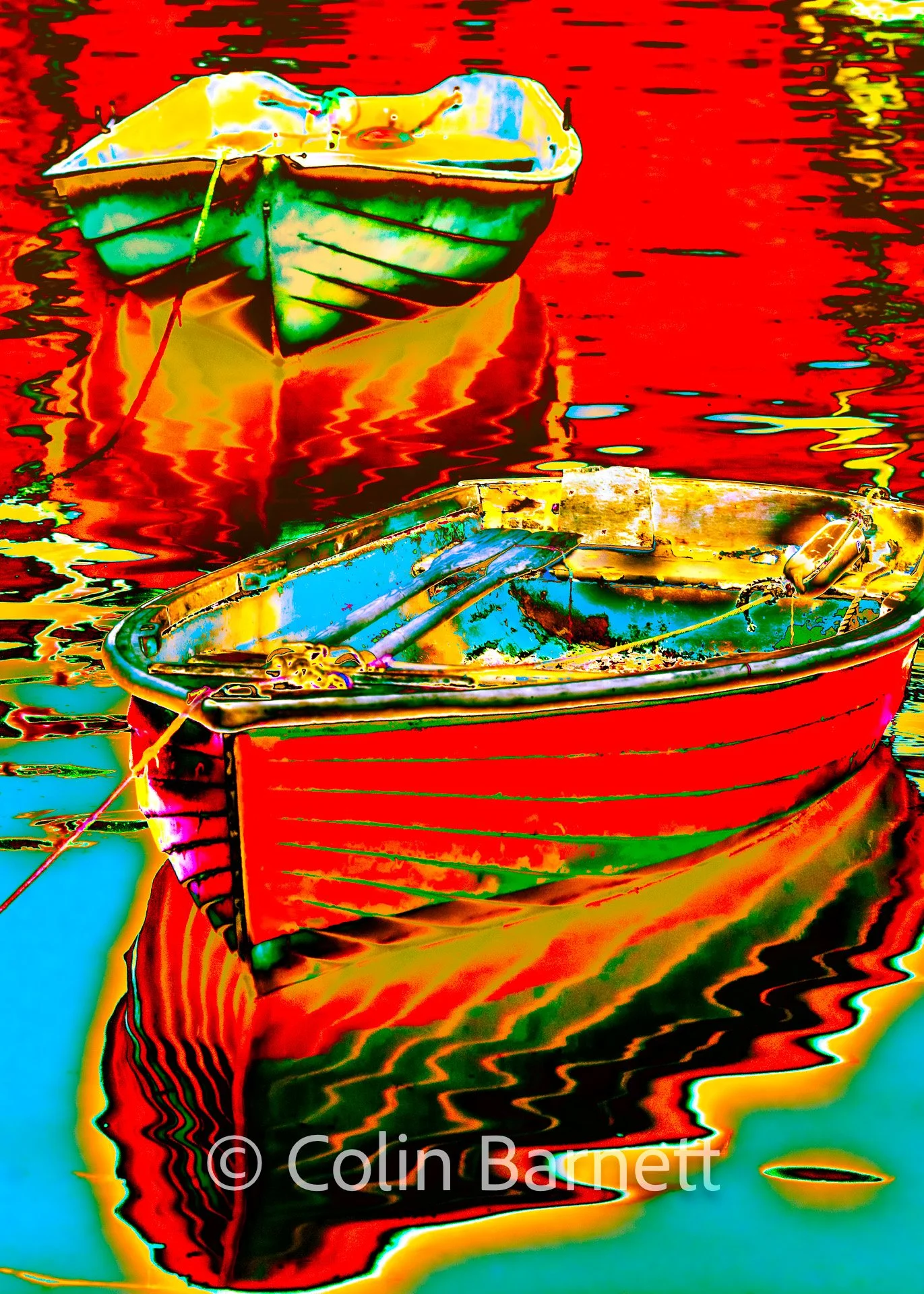 Out of frustration, or maybe longing, I began experimenting with my images — photos of a nearby harbour, ones I had overlooked before. Using digital tools, I began reworking these images, solarising them, altering the light, colour and tones of the image. What emerged surprised me, familiar scenes became luminous, and vibrant, with unexpected colour and abstraction. A harbour wall became a dance of reds and blues; the tide-washed stone became painterly, encouraging the viewer to look again.